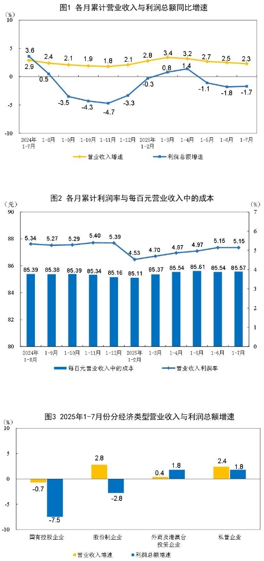 7月份,規(guī)模以上工業(yè)企業(yè)利潤同比下降1.5%。